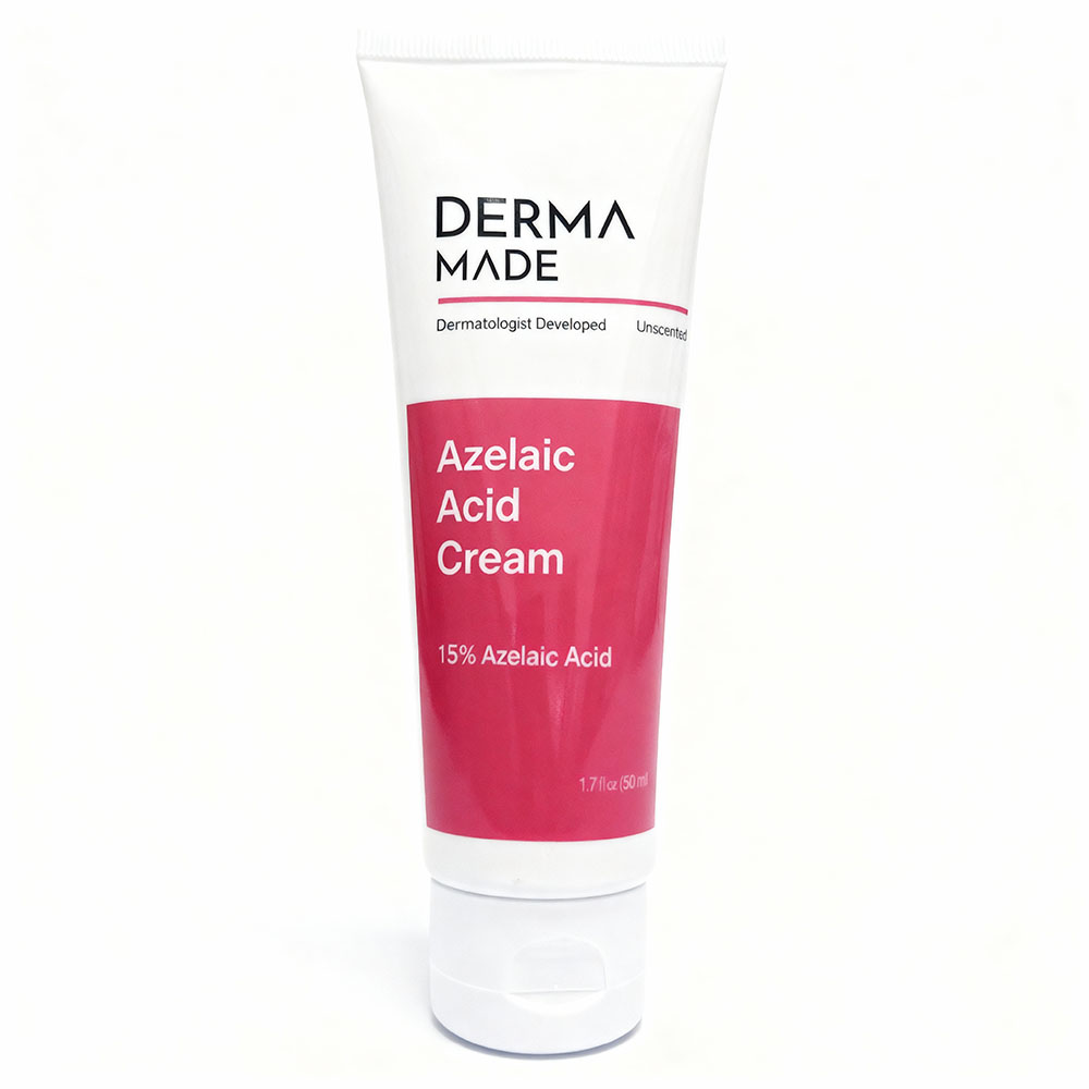 Derma Made Azelaic Acid Cream is a dermatologist-developed formula designed to calm inflammation, reduce redness, and refine uneven texture. With a potent 15% concentration of azelaic acid, this lightweight cream works to target acne, rosacea, and post-inflammatory pigmentation while promoting a more even, radiant complexion.