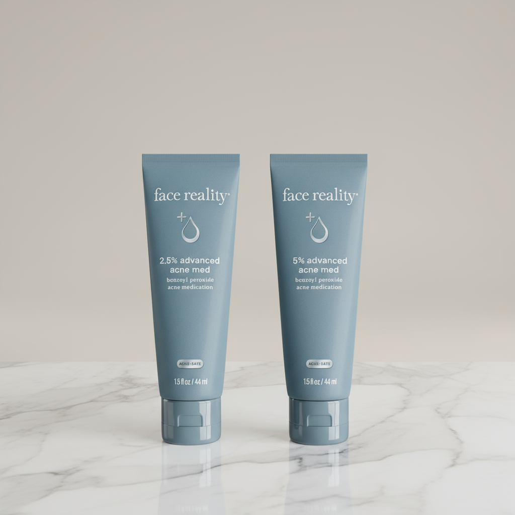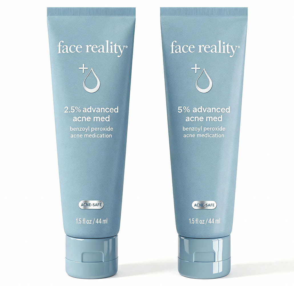 Face Reality’s Advanced Acne Med combines clinical-grade Benzoyl Peroxide with Micro-Smooth Technology™ to deeply penetrate pores, kill acne-causing bacteria, and reduce inflammation — all while minimizing dryness or irritation.
